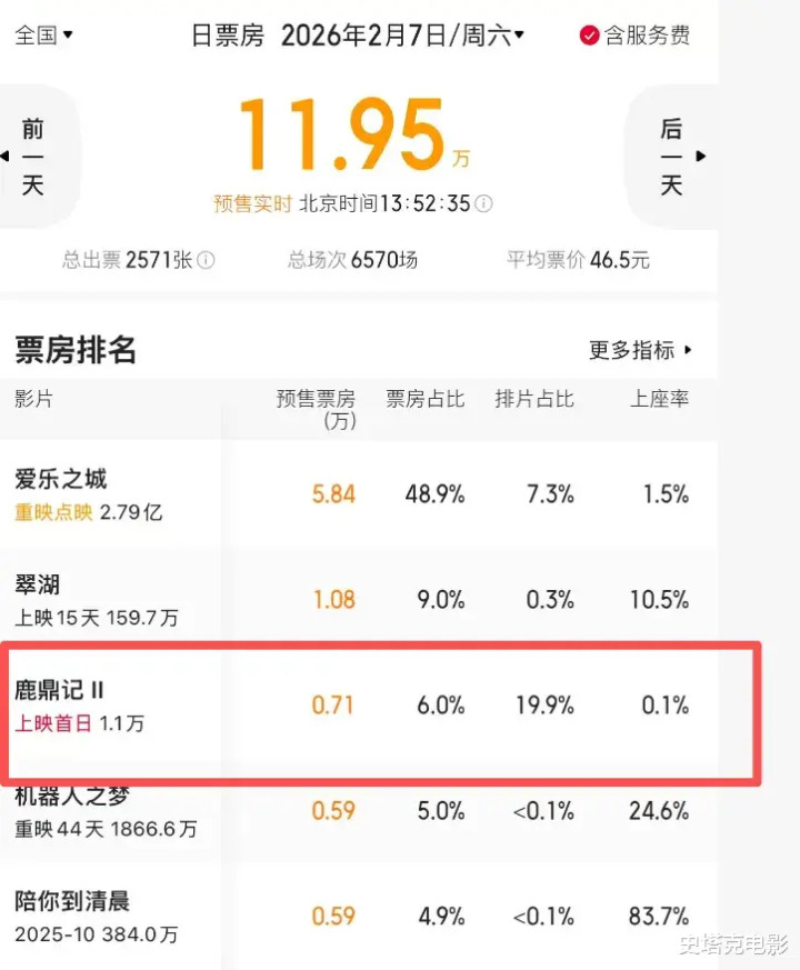 2025年底《鹿鼎记》第一部上映,还不到130万的票房,片方分账几十万。