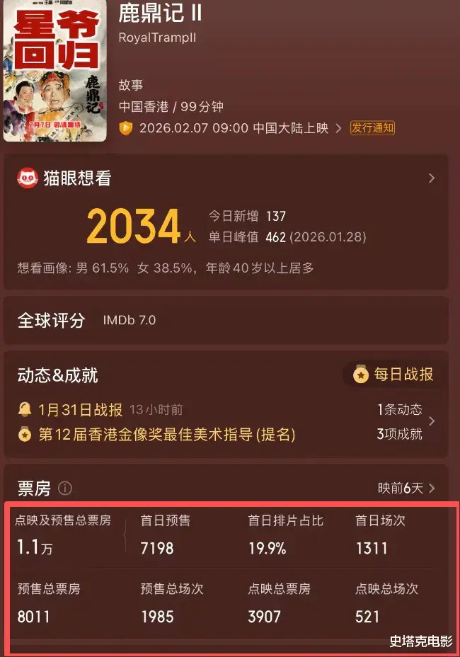 而到了第二部《鹿鼎记》上映,到了现在预售票房仅1.1万,时隔34年,欠星爷的票还能还吗?